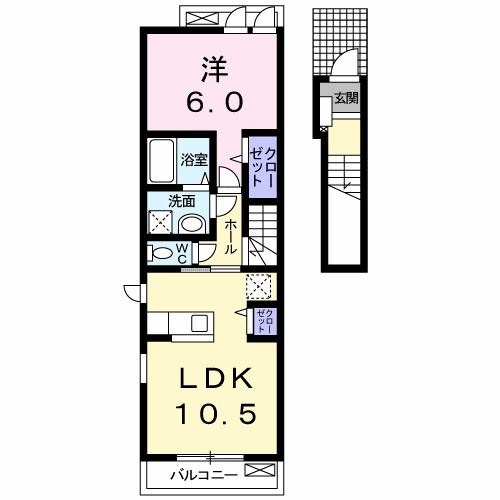 洋室 6.0帖/LDK 10.5帖 - 向き
